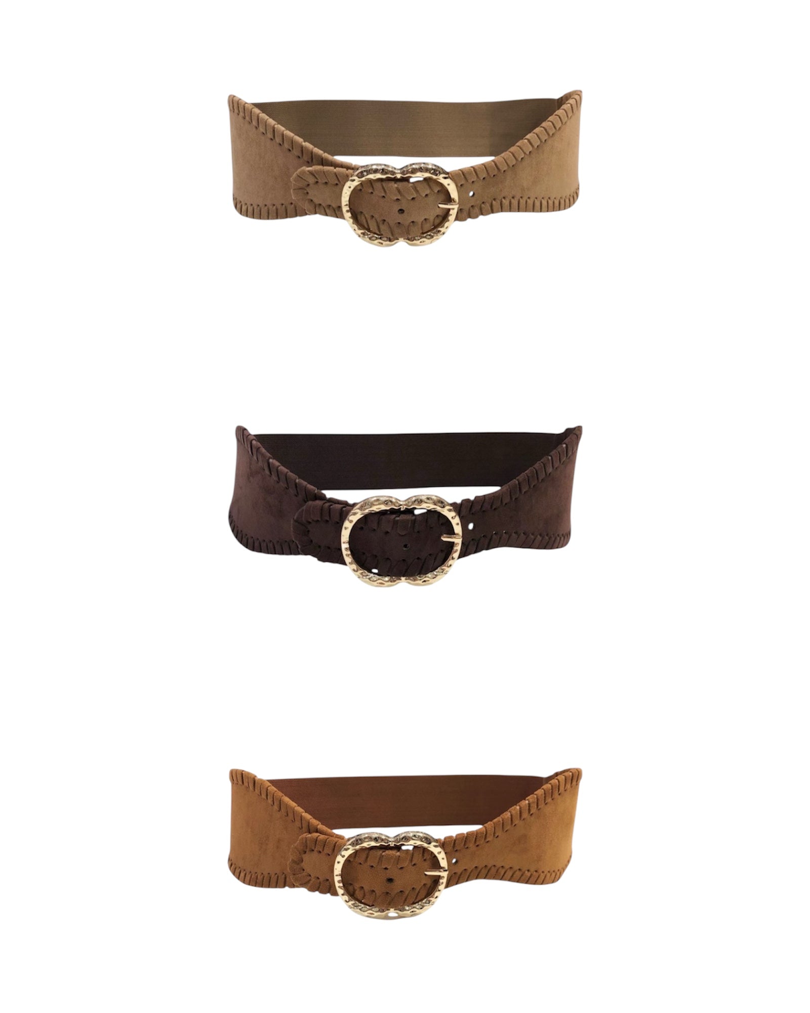 Cintura scamosciata boheme con intrecci, fibbia dorata ed elastico posteriore