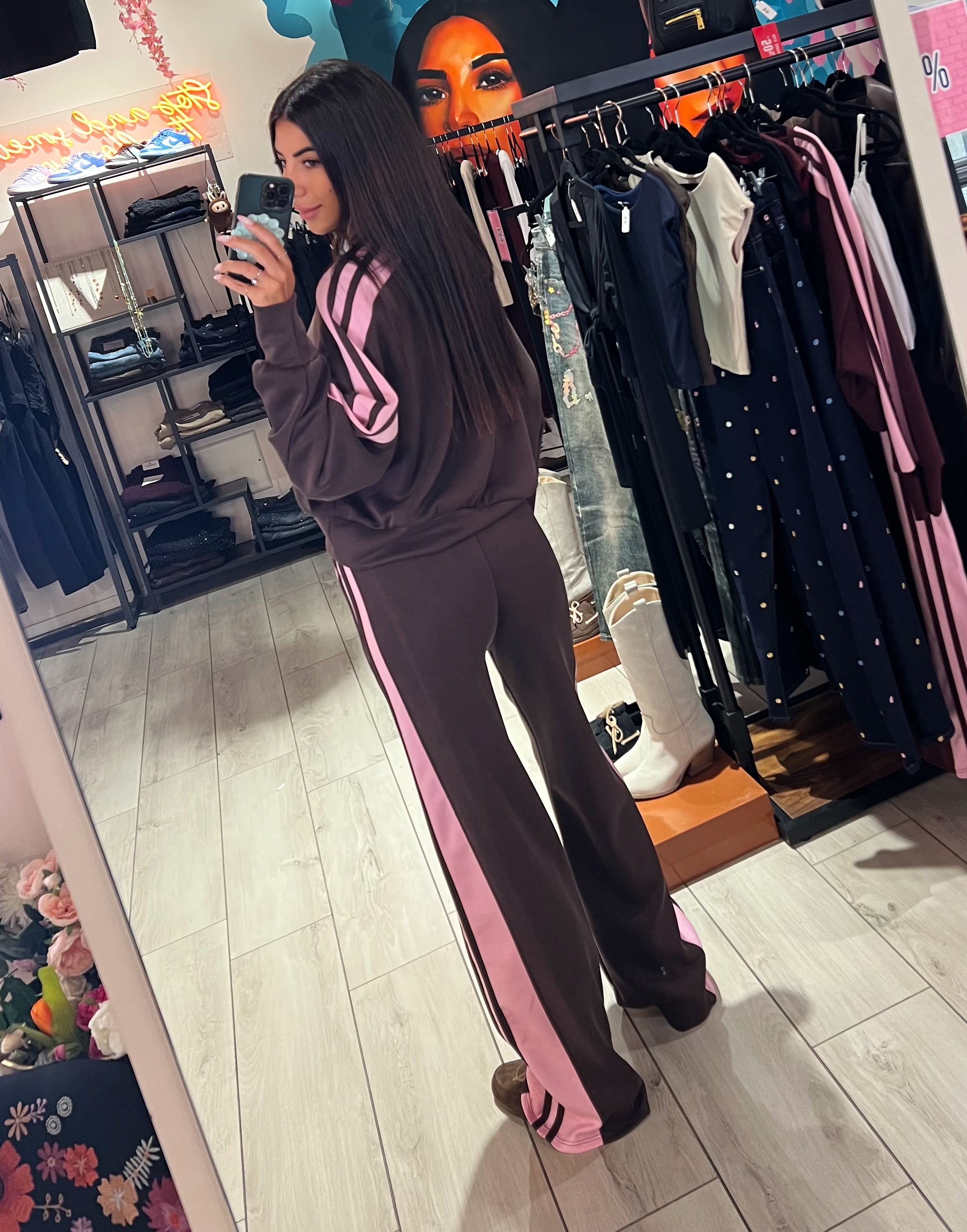 Set coordinato tuta con contrasto colori composto da felpa crollata e pantalone a gamba dritta