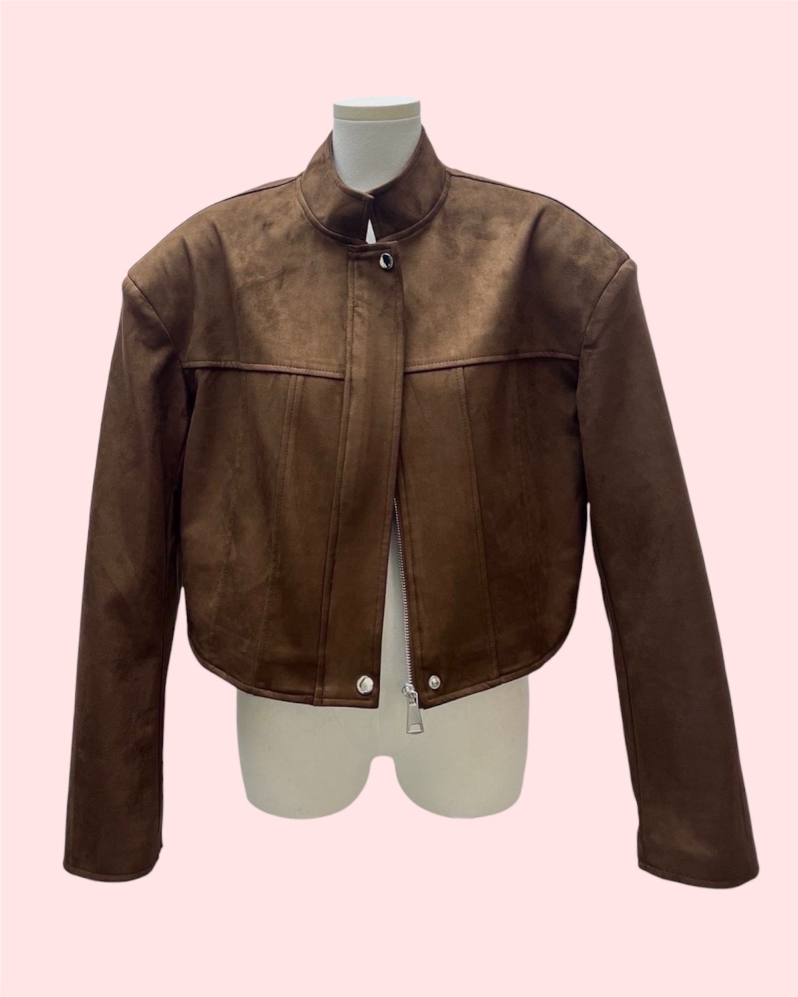 Giacca in morbido ecocamoscio premium con spalle rinforzate e zip frontale
