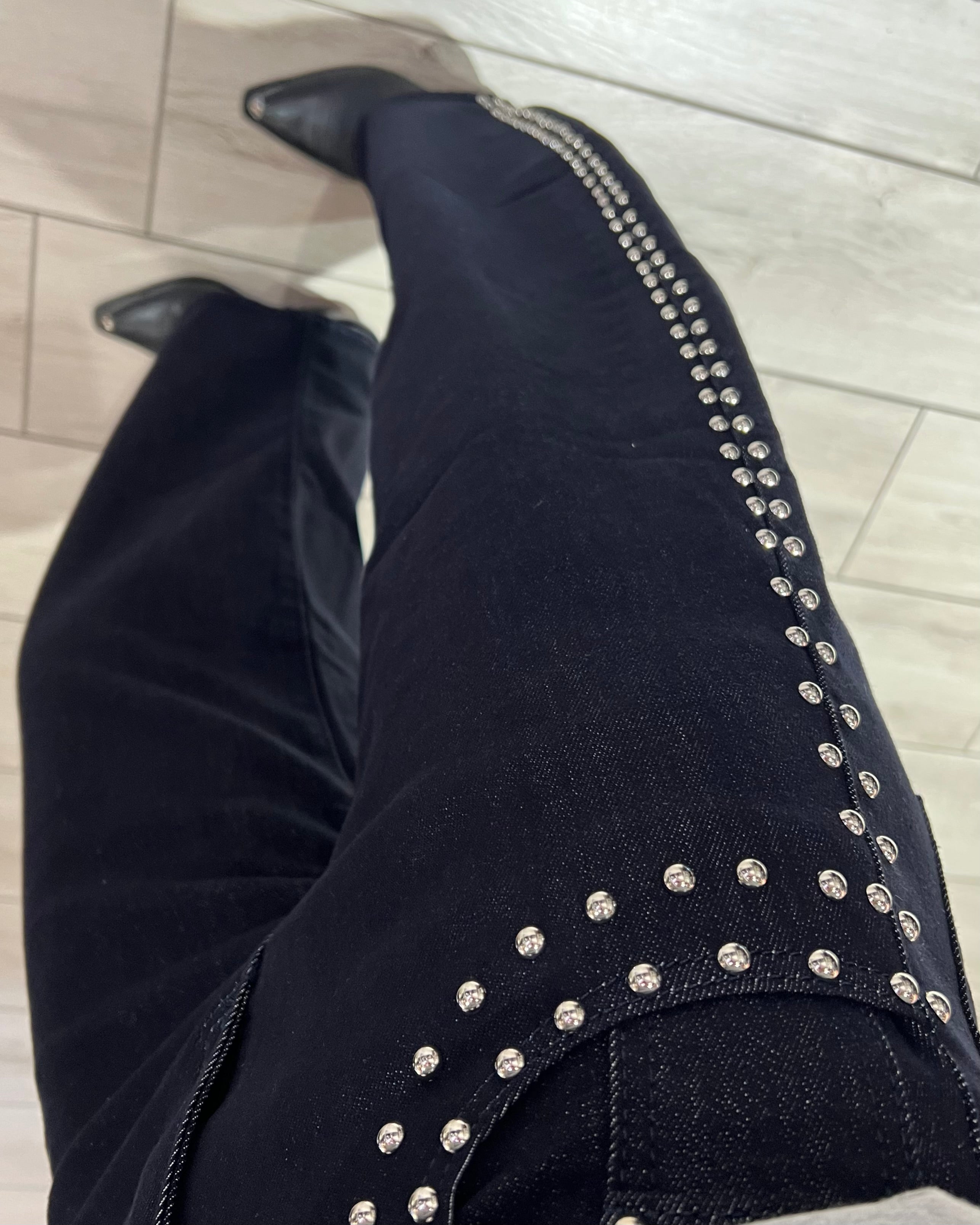 Jeans modello balloon lavaggio zero con applicazione borchie