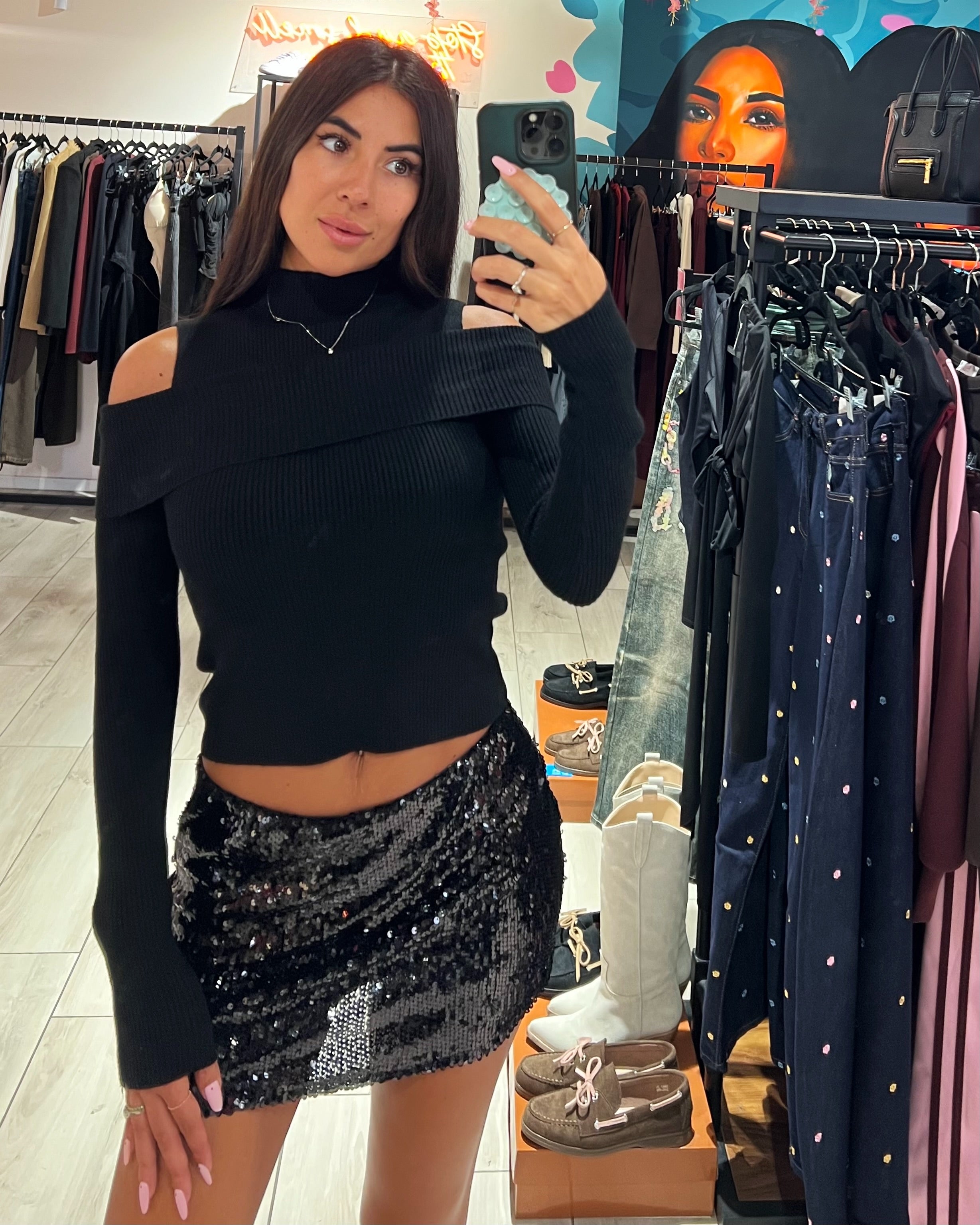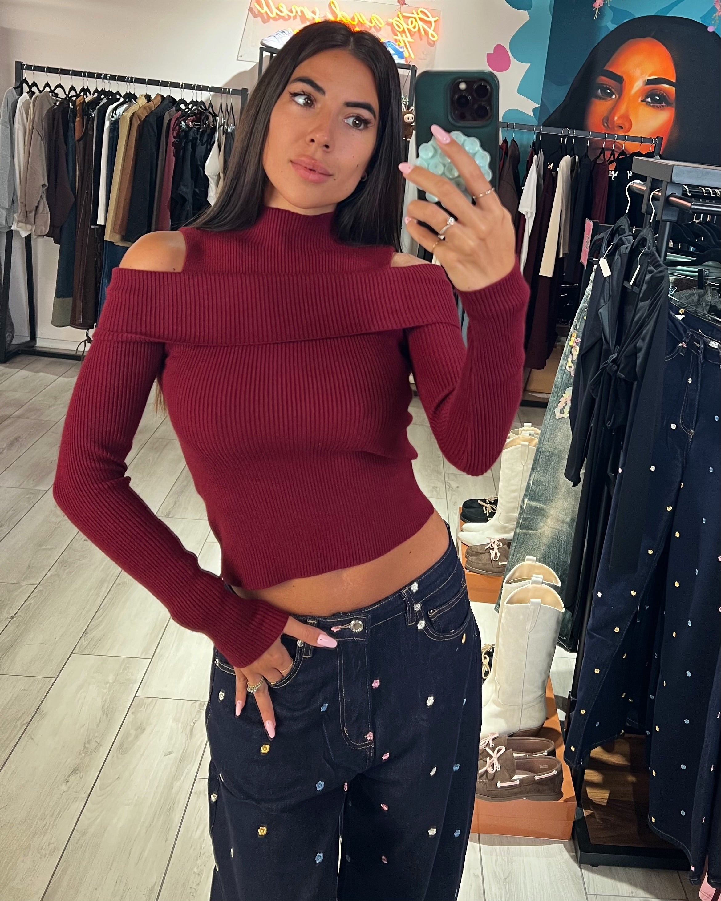 Morbido pullover a costine con mezzo collo e dettaglio spalle giù reverse