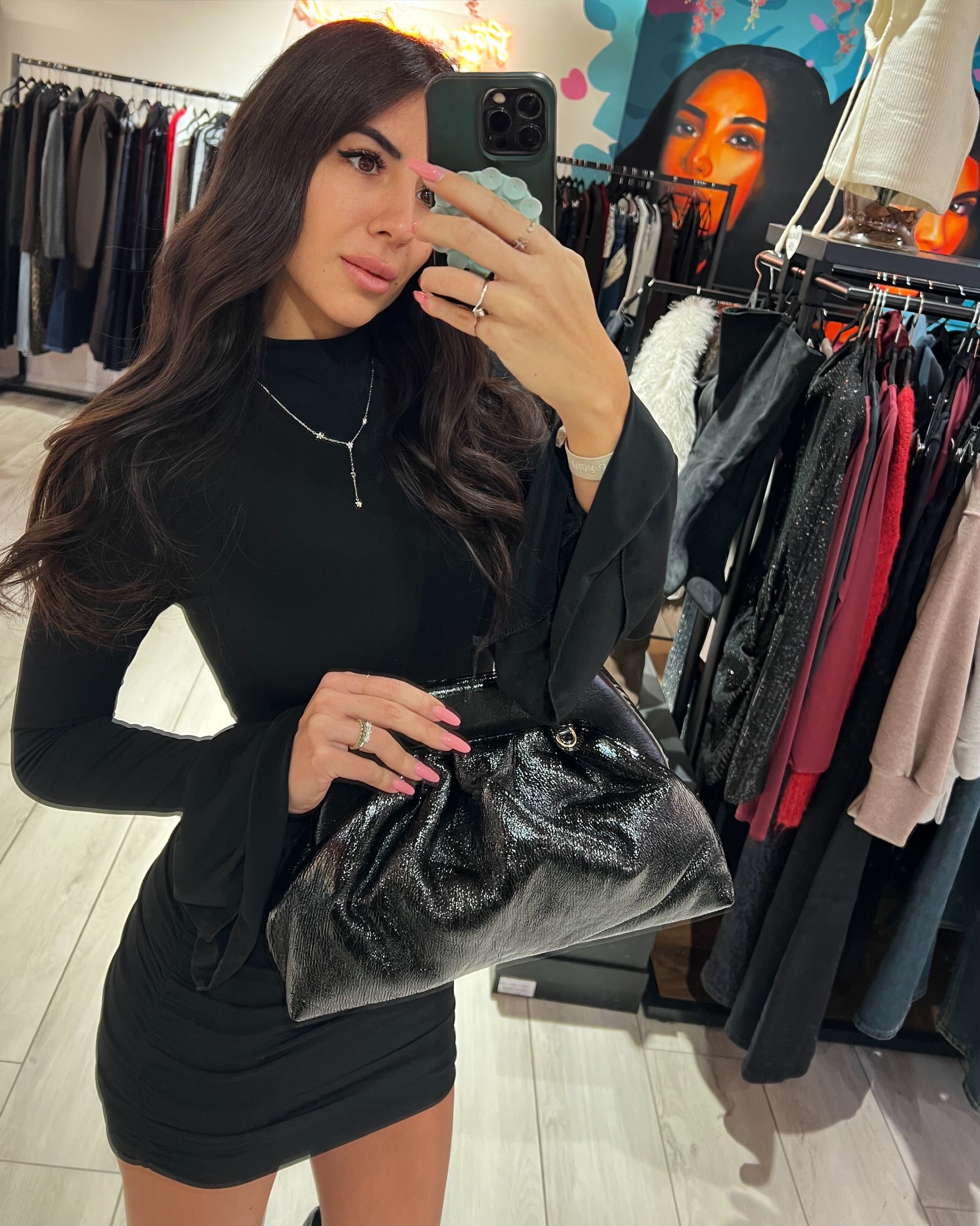 Morbida clutch laminata con chiusura rigida a calamita e interno pile borg