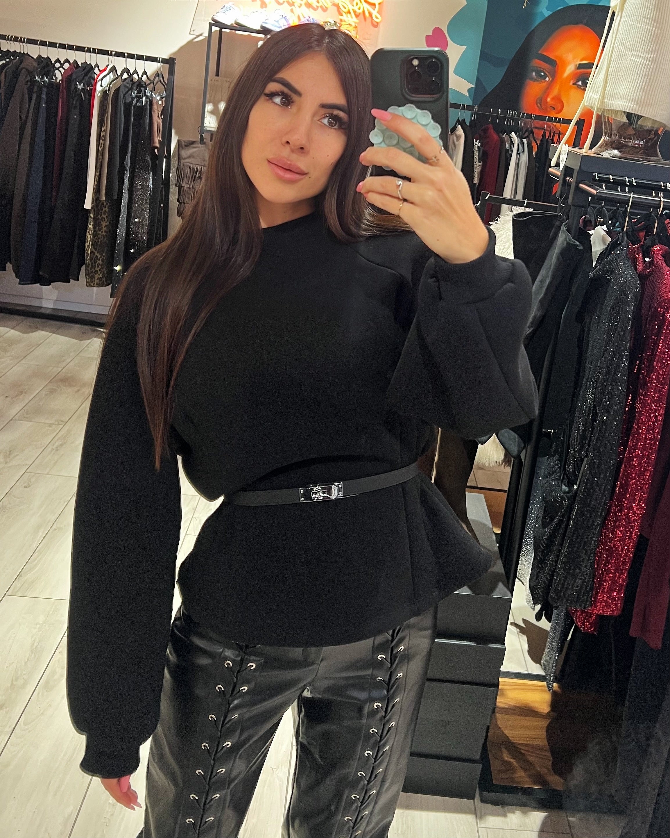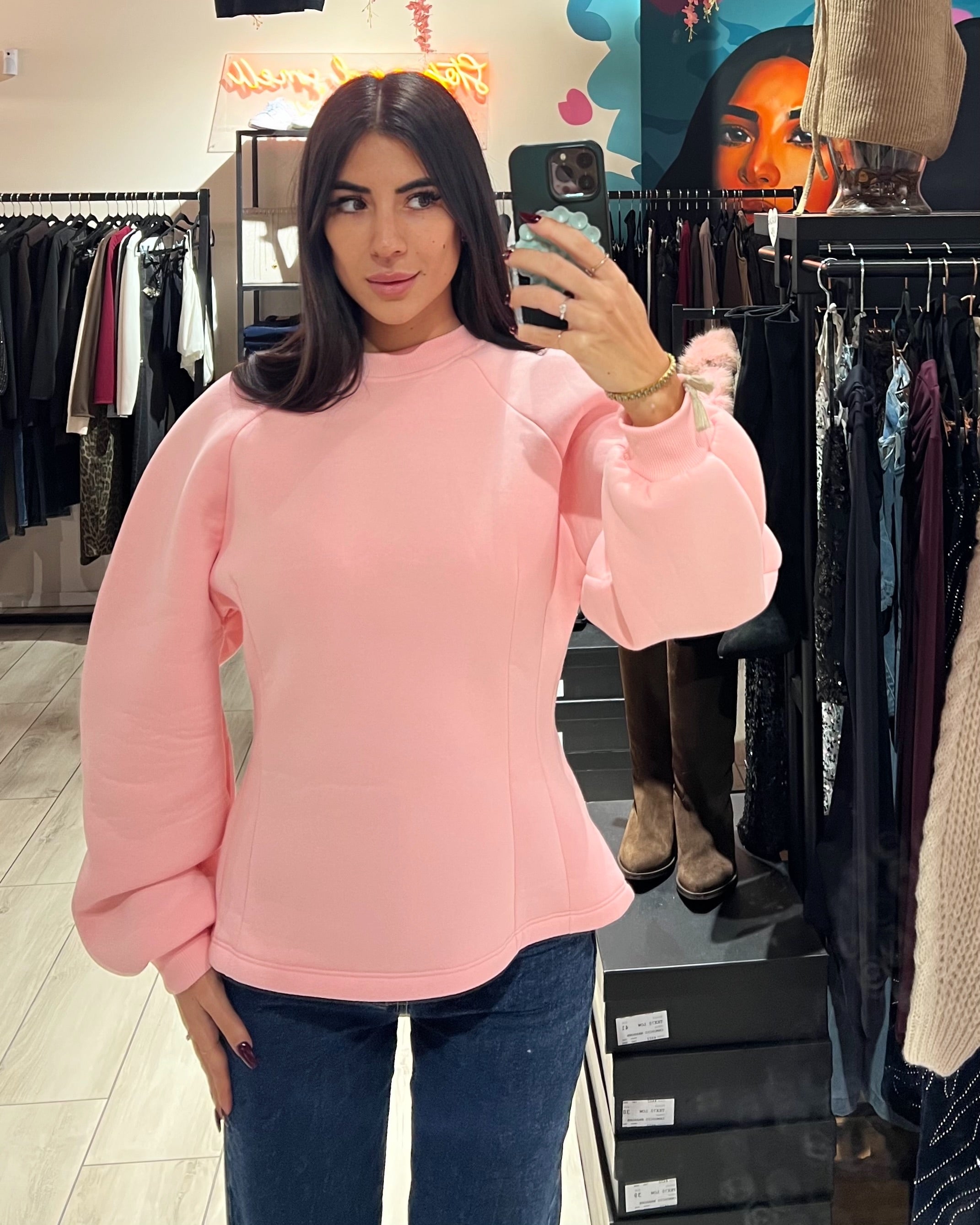 Felpa sfiancata con interno in morbido pile e maniche voluminose