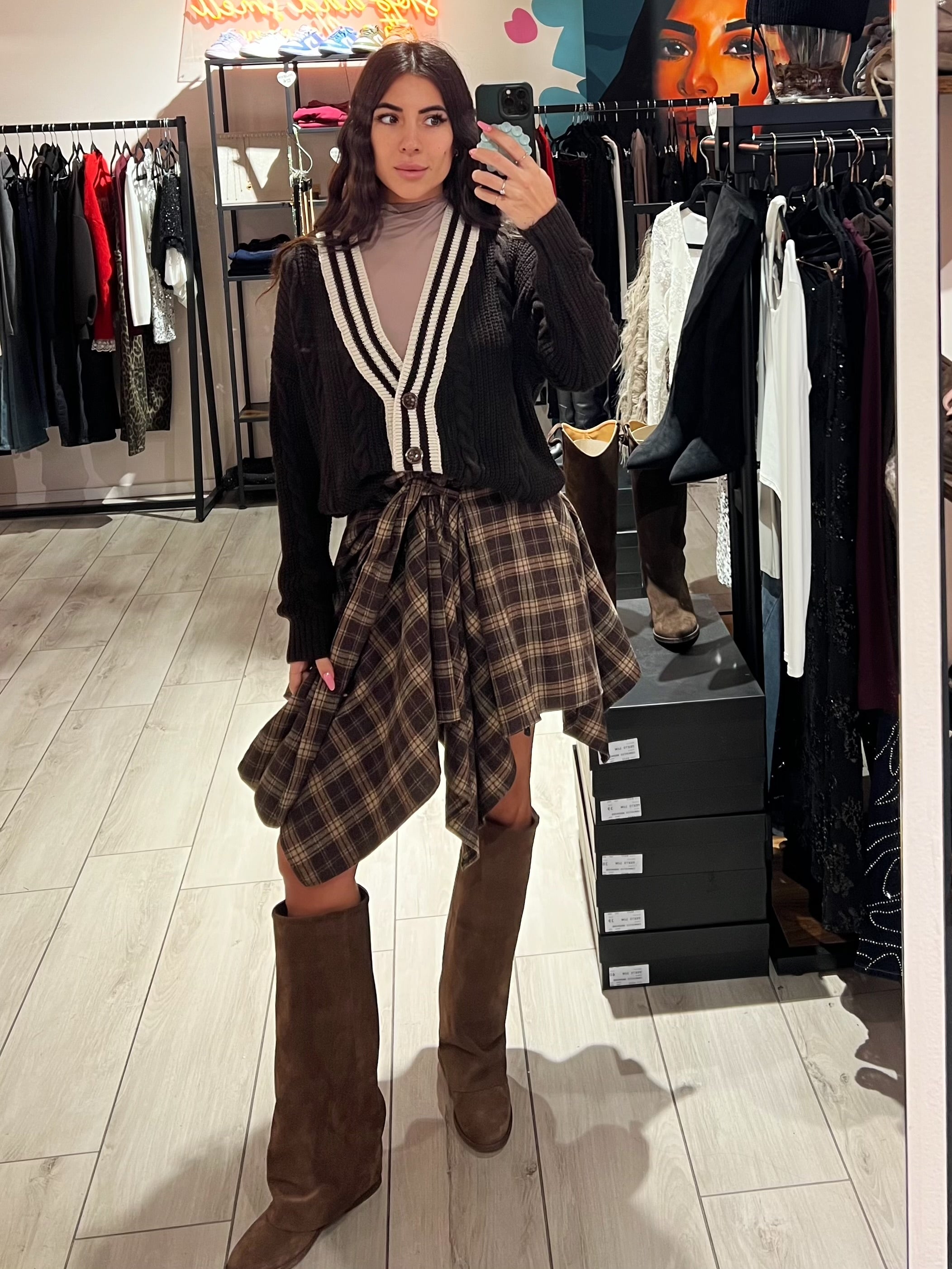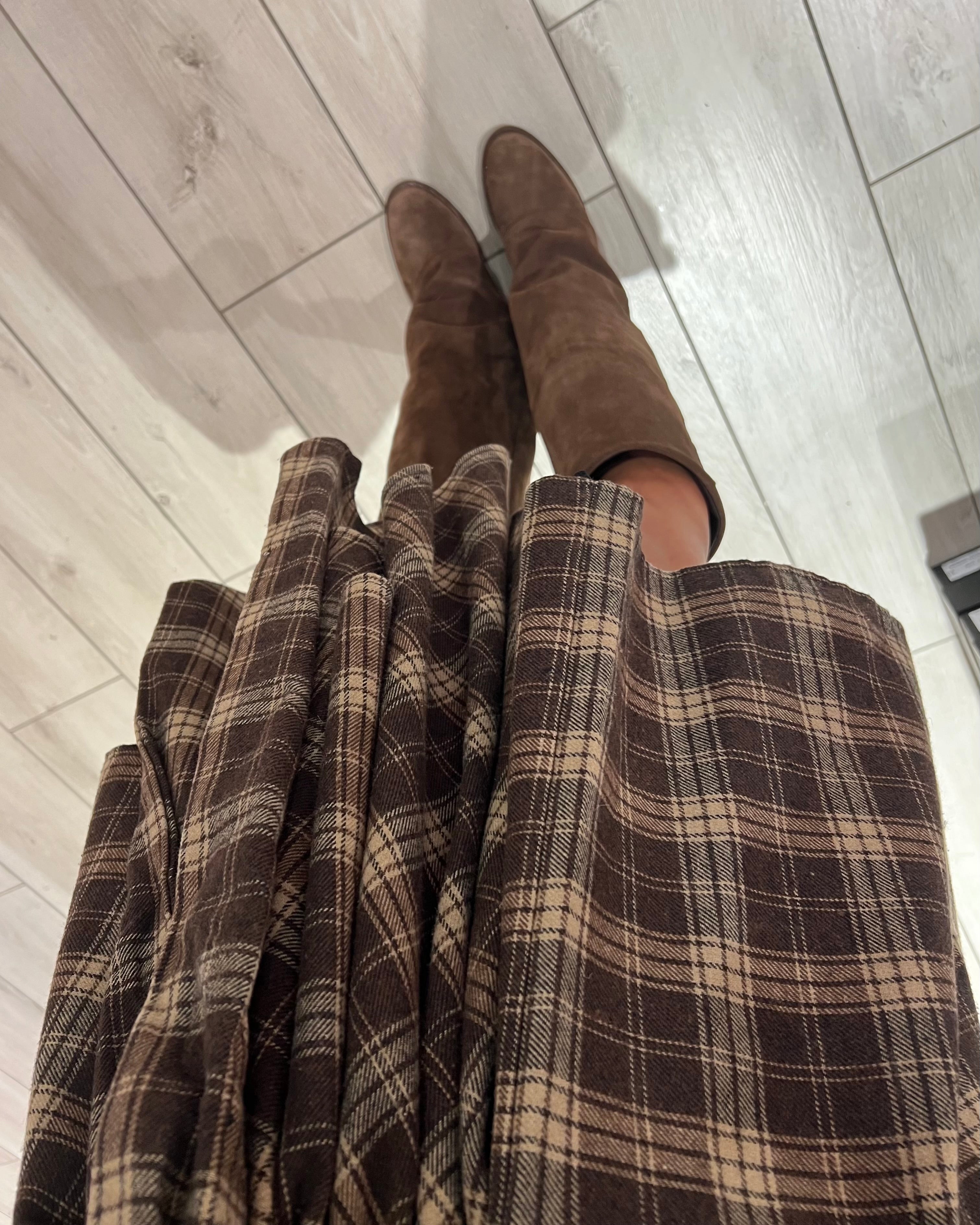 Gonna elasticizzata a quadri con fondo asimmetrico e cintura regolabile