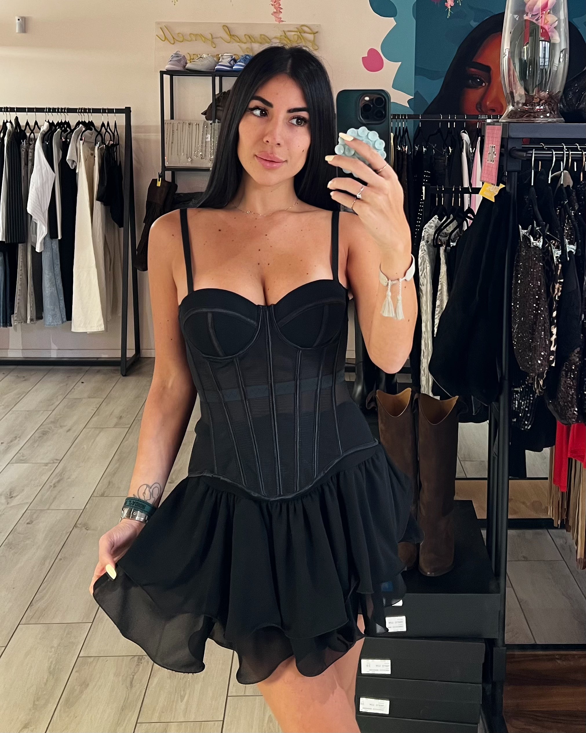 Gonna chiffon elasticizzata con doppia balza voluminosa e culotte incorporata