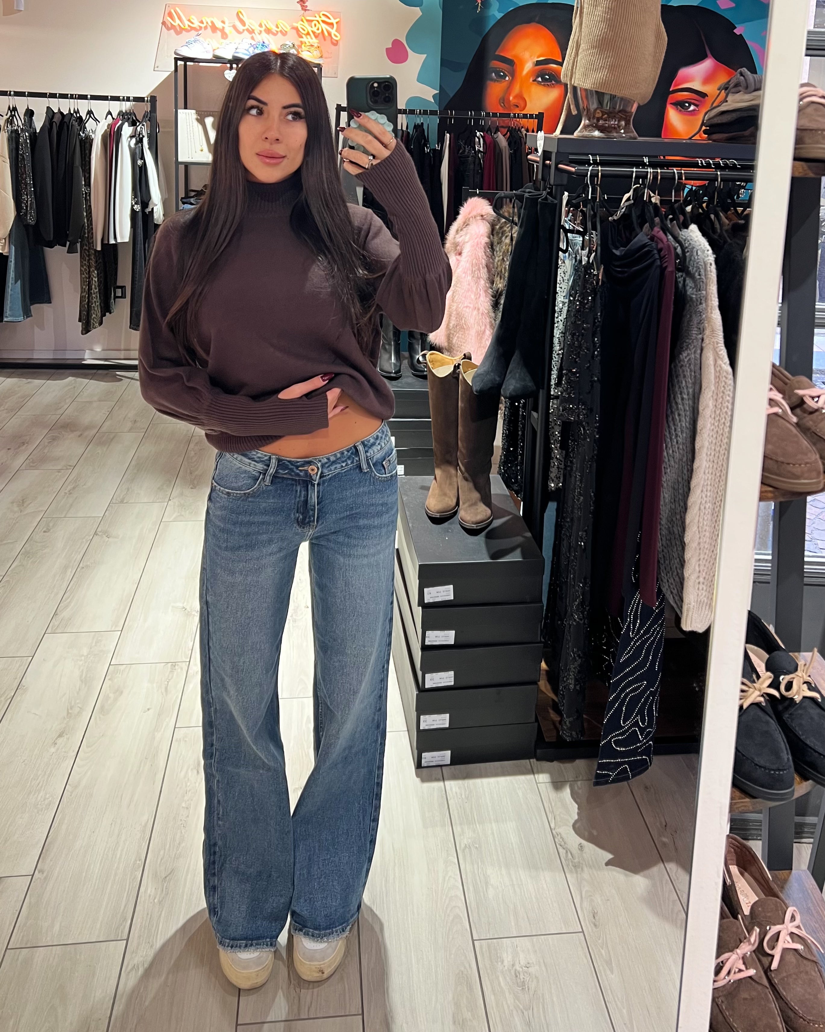 Jeans modello wide leg lavaggio blu medio con vita bassa