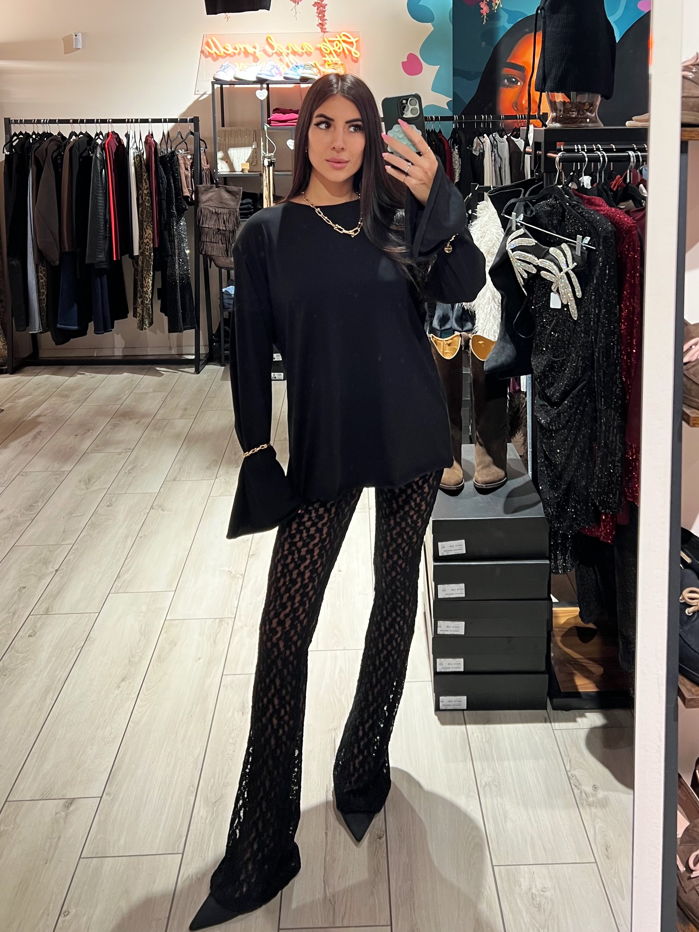 Leggings elasticizzati modello flare in pizzo con trasparenze