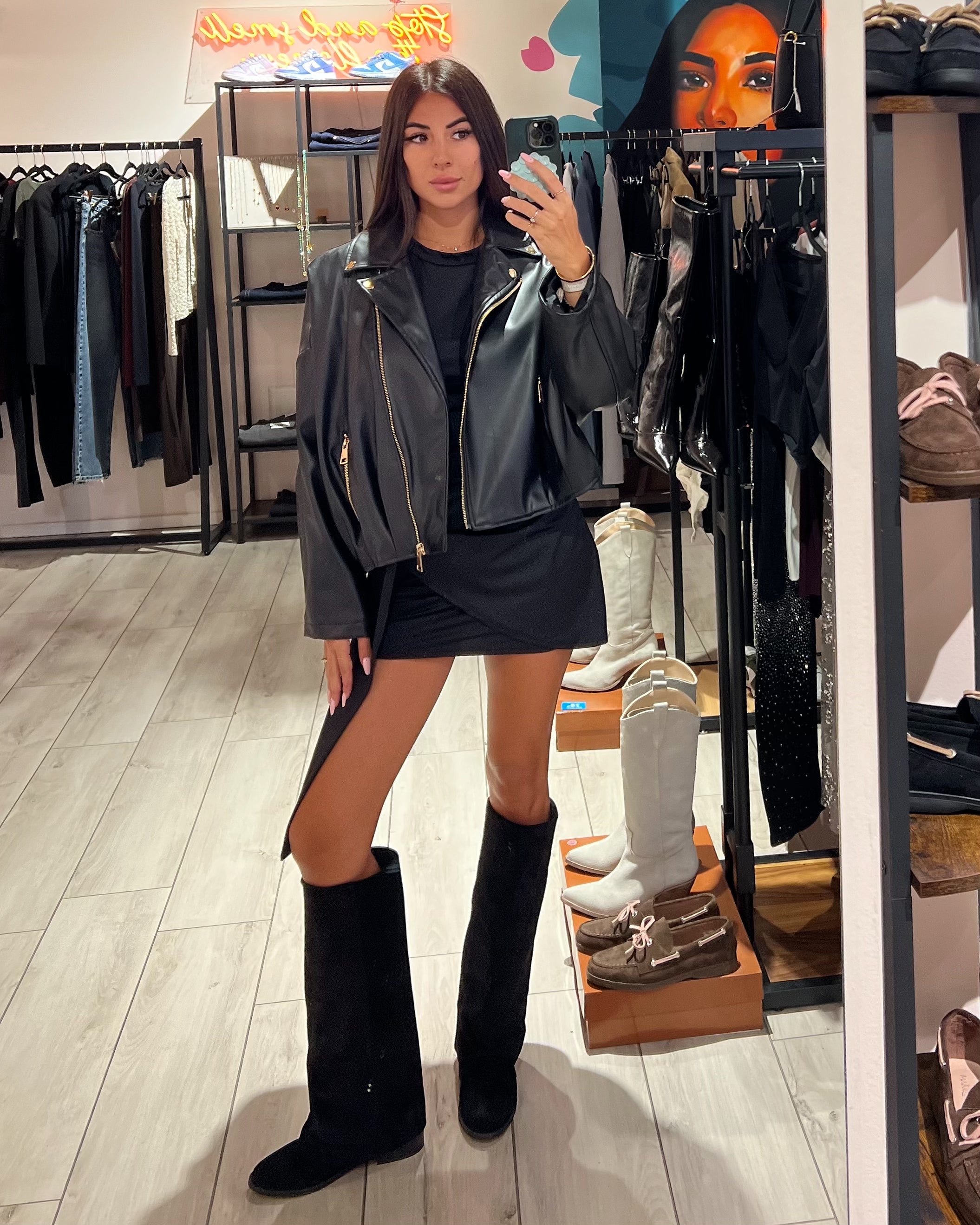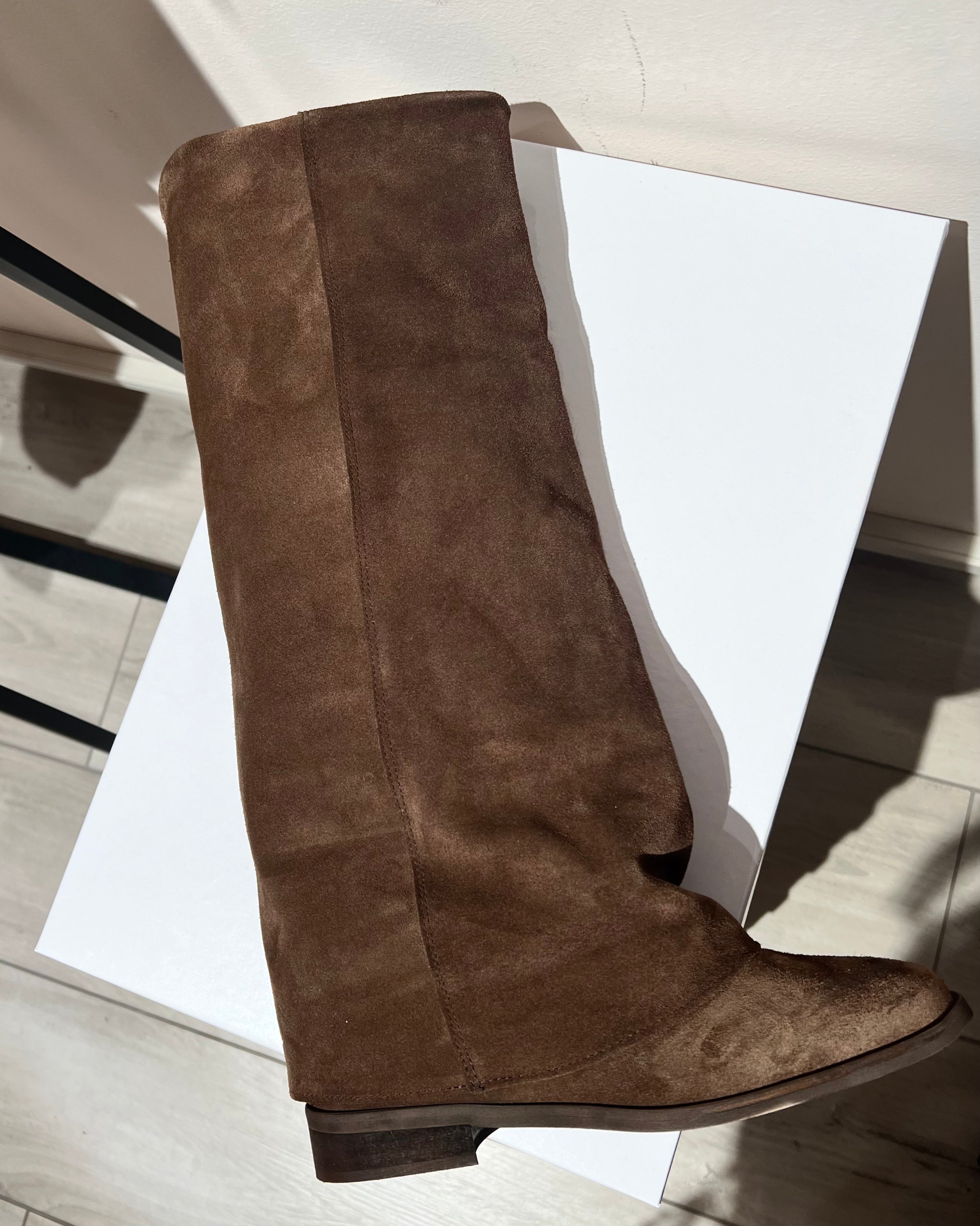 Stivali in vera pelle scamosciati con rialzo interno e piegone abbondante